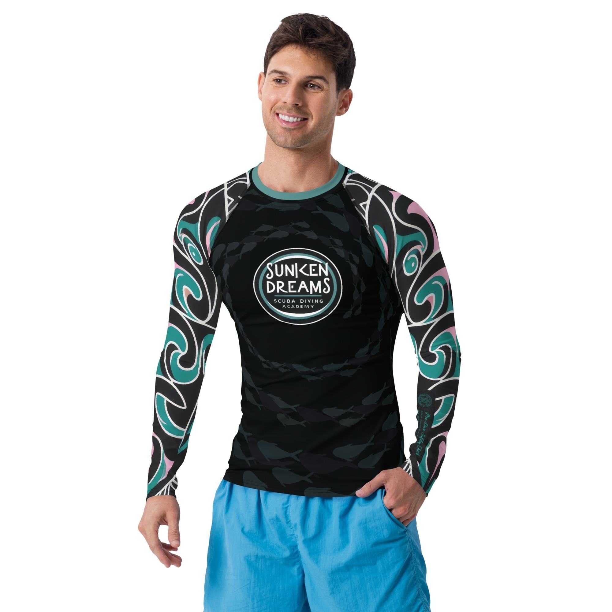 Crafted for academy scuba divers, this sleek and versatile long-sleeve rash guard offers exceptional protection and comfort. The smooth, slim-fitted design hugs your body, while flat ergonomic seams ensure you glide through the water with ease. It’s designed to be a bit longer than your casual tee, providing extra coverage and protection during your underwater expeditions.